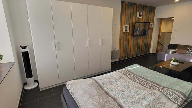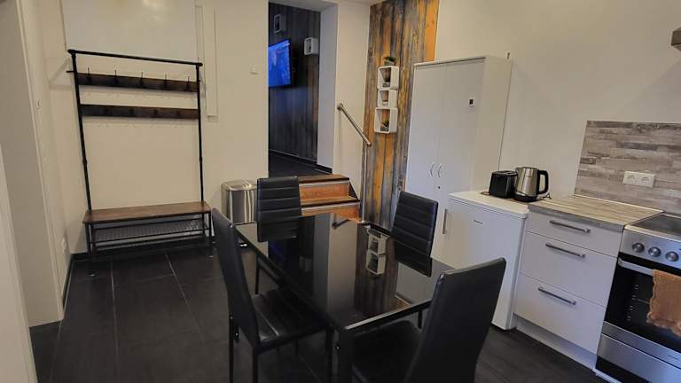 Die Ferienwohnung verfügt über ein Schlafzimmer und ein gemütliches Wohnzimmer mit einem Flachbild-TV. Eine voll ausgestattete Küche steht den Gästen zur Verfügung, ebenso ein Badezimmer.