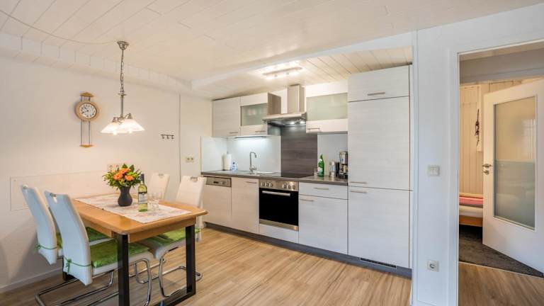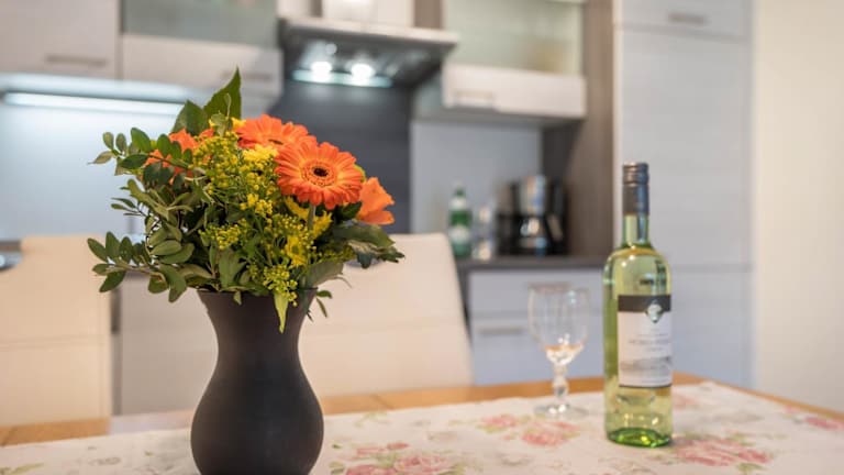Die Ferienwohnung Odenwald umfasst zwei komfortable Schlafzimmer, ein lichtdurchflutetes Wohnzimmer sowie eine vollständig eingerichtete Küche mit Kühlschrank und Kaffeemaschine. Zudem sind ein Badezimmer mit Dusche und kostenlosen Pflegeprodukten vorhanden. Handtücher und Bettwäsche werden bereitgestellt.