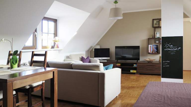 Die Ferienwohnung verfügt über einen Satelliten Flachbild-TV und eine gut ausgestattete Küche mit Kühlschrank, Geschirrspüler und Ofen. Des Weiteren steht ein Badezimmer mit Dusche und Haartrockner zur Verfügung.
