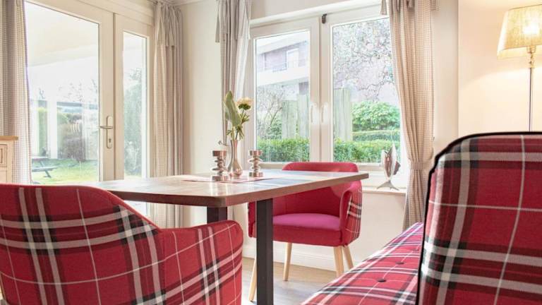 Die Ferienwohnung bietet zwei Schlafzimmer, einen Fernseher mit Satellitenkanälen, eine gut ausgestattete Küchenzeile mit Kühlschrank und Geschirrspüler. Ein Badezimmer mit Dusche ist ebenfalls vorhanden. Zudem steht ein Kinderspielplatz zur Verfügung.