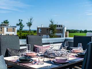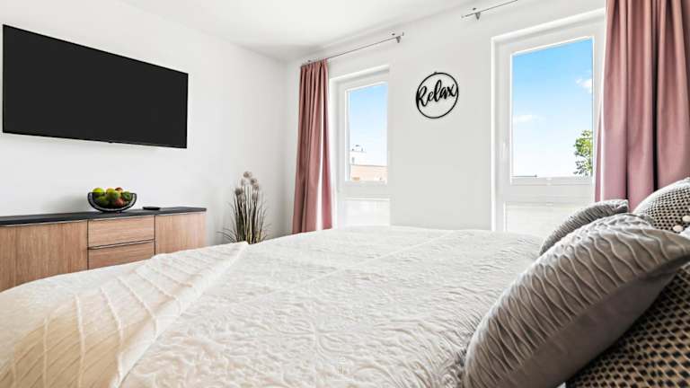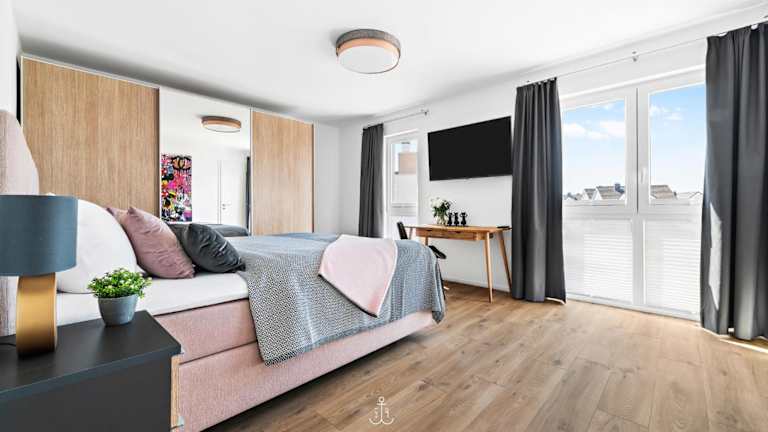 Die Ferienwohnung umfasst 3 Schlafzimmer und ist mit einem TV sowie einer voll ausgestatteten Küche versehen. Diese Küche beinhaltet einen Kühlschrank, einen Geschirrspüler, eine Waschmaschine, einen Ofen und eine Mikrowelle. Die Unterkunft bietet einen Balkon und Gartenmöbel.