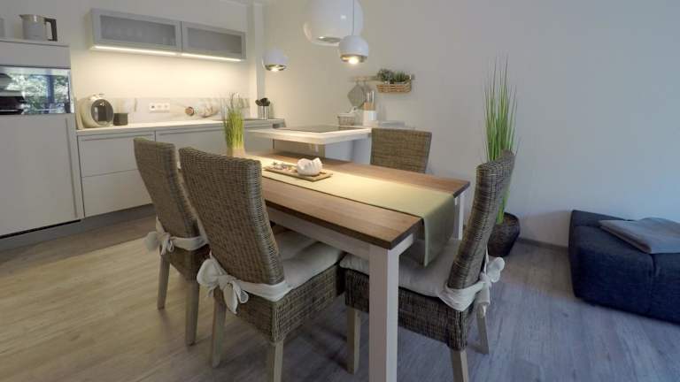 Die Ferienwohnung besteht aus einem Schlafzimmer, einem Wohnzimmer, einer voll ausgestatteten Küche mit Kühlschrank und Kaffeemaschine sowie einem Badezimmer mit Dusche und Haartrockner. Zur Ausstattung gehören zudem ein Flachbild-TV und ein DVD-Player.