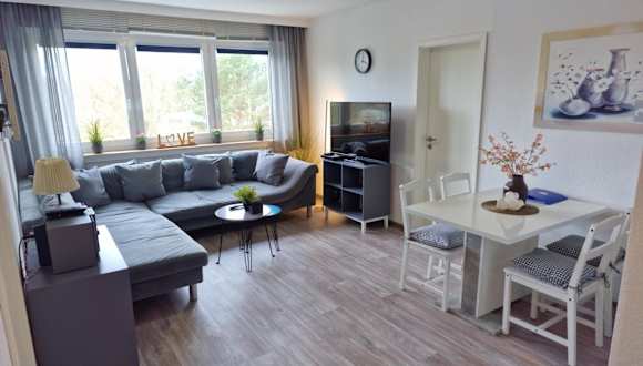 Die Ferienwohnung umfasst 3 Schlafzimmer, ein Wohnzimmer sowie eine voll ausgestattete Küchenzeile mit Kühlschrank und Kaffeemaschine. Weiterhin befindet sich ein Badezimmer mit Dusche und Haartrockner in der Wohnung. Zur Unterhaltung stehen ein Flachbild-TV mit Kabelkanälen, ein DVD-Player sowie ein CD-Player zur Verfügung.