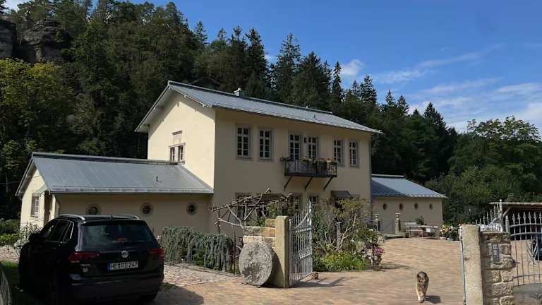 Die Ferienwohnung Parkblick im Badehaus liegt in Schweizermühle, 13 km von der Festung Königstein entfernt. Die Entfernung zu Schloss & Park Pillnitz beträgt 27 km, während der Panometer Dresden 37 km entfernt ist. Der nächstgelegene Flughafen ist der Flughafen Dresden in 54 km Entfernung.