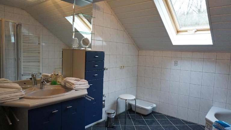 Die Ferienwohnung verfügt über 3 Schlafzimmer und 2 Badezimmer mit Dusche. Das Wohnzimmer bietet zusätzlichen Platz zum Entspannen.