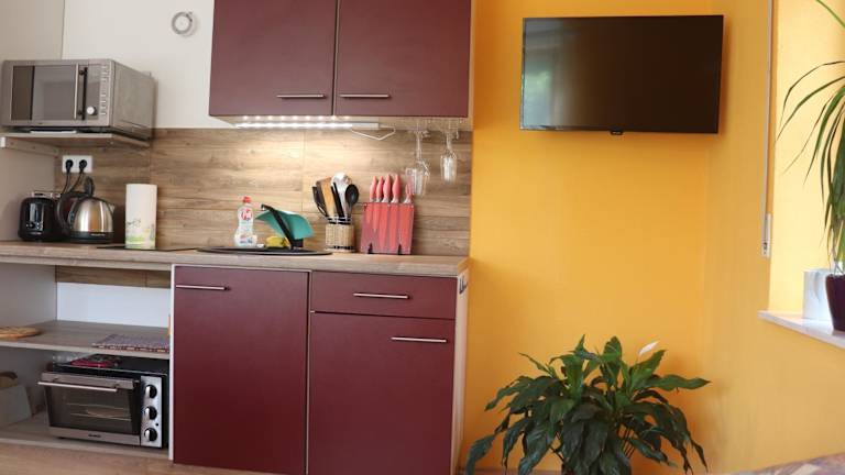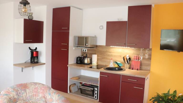 Die Ferienwohnung umfasst 1 Schlafzimmer und 1 Badezimmer. Sie ist ausgestattet mit Bettwäsche, Handtüchern, einem Flachbild-TV mit Satellitenkanälen, einem Essbereich sowie einer voll ausgestatteten Küche. Eine Terrasse mit Gartenblick ist ebenfalls vorhanden.