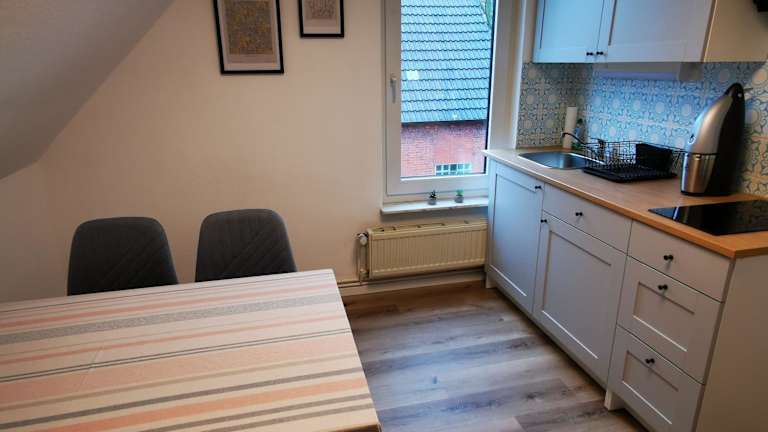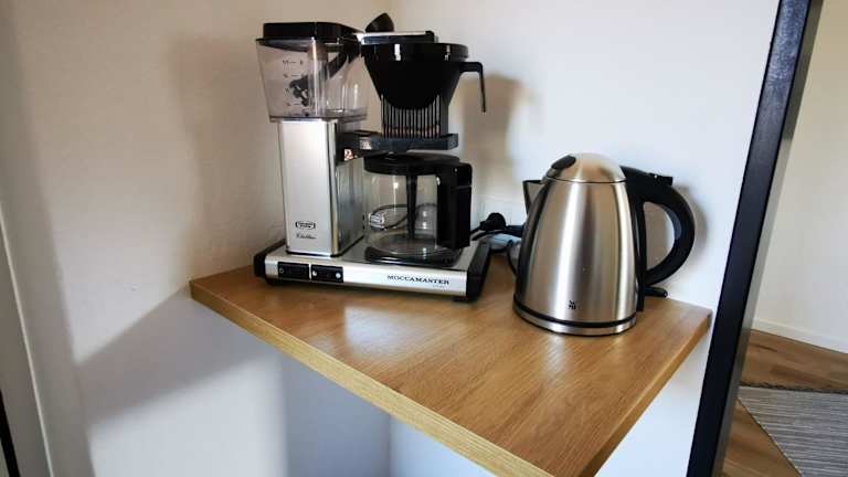 Die Ferienwohnung bietet ein Schlafzimmer, ein Wohnzimmer sowie eine voll ausgestattete Küche mit Kühlschrank und Kaffeemaschine. Es steht ein Badezimmer mit Dusche zur Verfügung. Die Ausstattung umfasst auch kostenloses WiFi.