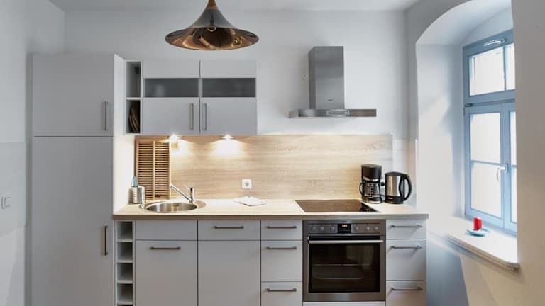 Die Unterkunft umfasst ein Schlafzimmer und eine voll ausgestattete Küche mit Kühlschrank und Geschirrspüler. Ein gemütlicher Sitzbereich, ein TV sowie ein Badezimmer mit Badewanne sind ebenfalls vorhanden. Handtücher und Bettwäsche werden bereitgestellt.