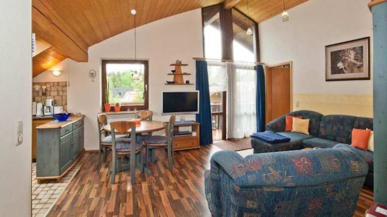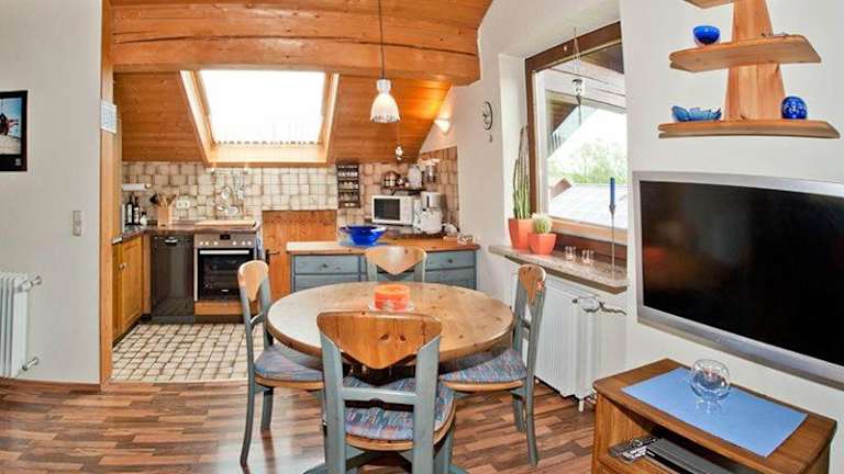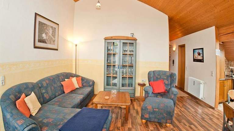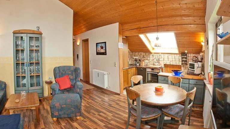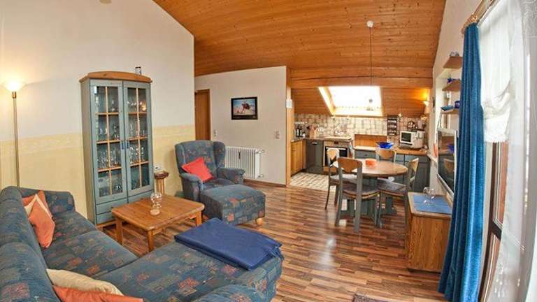 Die Ferienwohnung besteht aus einem Schlafzimmer, einem Wohnzimmer, einer voll ausgestatteten Küchenzeile sowie einem Badezimmer mit Dusche und Badewanne. Zudem ist ein Flachbild-TV mit Satellitenkanälen vorhanden.