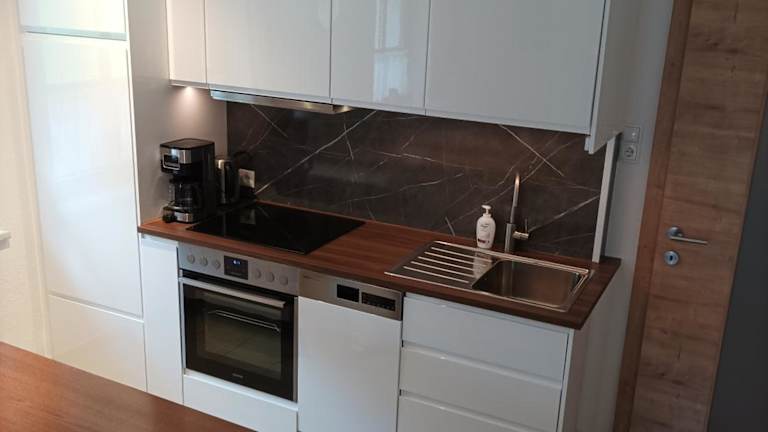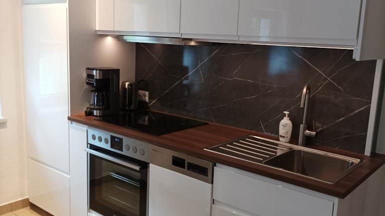 Die Ferienwohnung bietet Platz für bis zu 6 Personen mit 3 Schlafzimmern und einem Wohnzimmer. Zur Ausstattung gehören ein Flachbild-TV sowie eine gut ausgestattete Küche mit Kühlschrank und Geschirrspüler. Ein Badezimmer mit Dusche sowie Handtücher und Bettwäsche sind ebenfalls vorhanden.