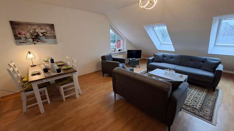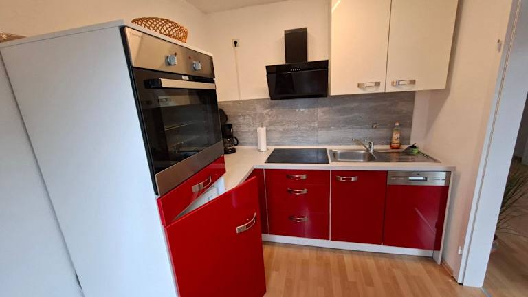 Die Ferienwohnung verfügt über 2 Schlafzimmer, ein Wohnzimmer mit einem Flachbild-TV, eine voll ausgestattete Küche mit Kühlschrank und Geschirrspüler sowie ein Badezimmer mit Dusche. Handtücher und Bettwäsche werden bereitgestellt. Die Unterkunft ist rauchfrei und bietet Platz für Familien.