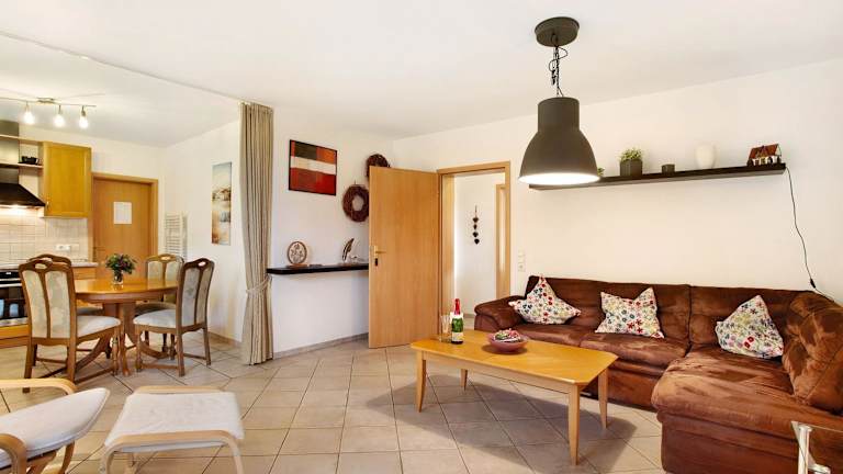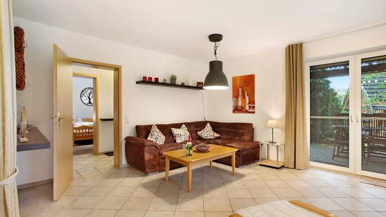 Die Ferienwohnung besteht aus einem Schlafzimmer, einem Wohnzimmer sowie einer voll ausgestatteten Küche mit Kühlschrank und Kaffeemaschine. Ein Badezimmer mit Dusche und kostenlosen Pflegeprodukten ist ebenfalls vorhanden. Für die Bequemlichkeit der Gäste werden Handtücher und Bettwäsche bereitgestellt. Zudem bietet die Wohnung eine Veranda / Patio sowie Zugang zu einem Kinderspielplatz und Grillmöglichkeiten.