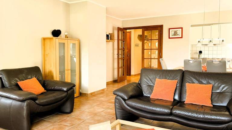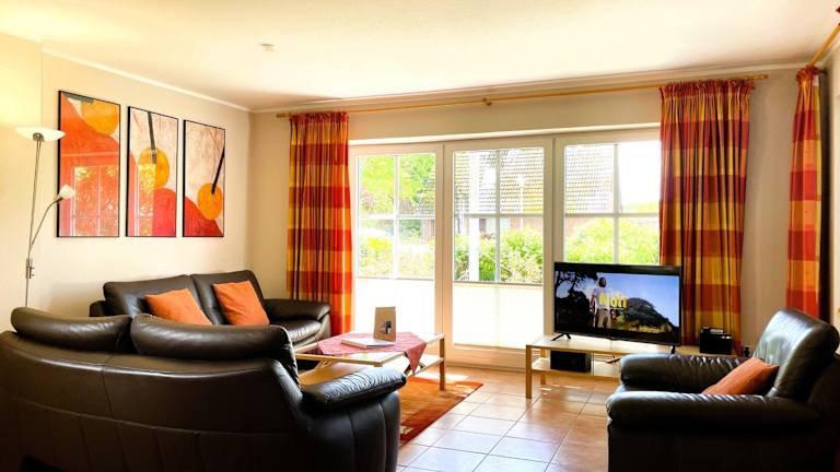 Die Ferienwohnung bietet zwei Schlafzimmer, die eine entspannte Nachtruhe ermöglichen. Ein TV ist ebenfalls vorhanden, um die Freizeit zu gestalten. Allergikerfreundliche Zimmer sind verfügbar.