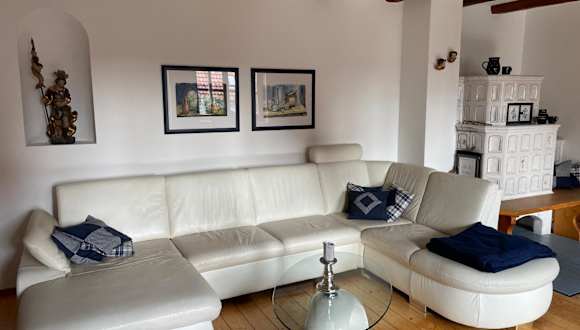 Die Ferienwohnung verfügt über zwei Schlafzimmer, zwei Badezimmer mit Bidet und Dusche sowie ein Wohnzimmer mit einem Sitzbereich und einem Essbereich. Die Küche ist mit Kühlschrank, Geschirrspüler und Ofen ausgestattet. Handtücher und Bettwäsche werden zur Verfügung gestellt.