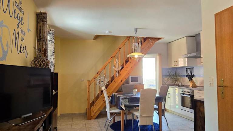Die Ferienwohnung ist eingerichtet mit einem Wohnzimmer, einem TV, einer voll ausgestatteten Küche mit Kühlschrank und Geschirrspüler sowie einem Badezimmer mit Dusche. Die Unterkunft bietet Nichtraucherzimmer und Heizung.