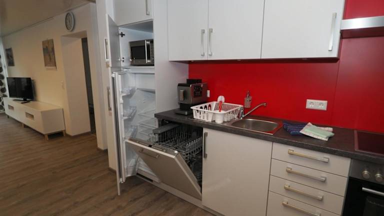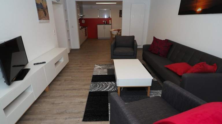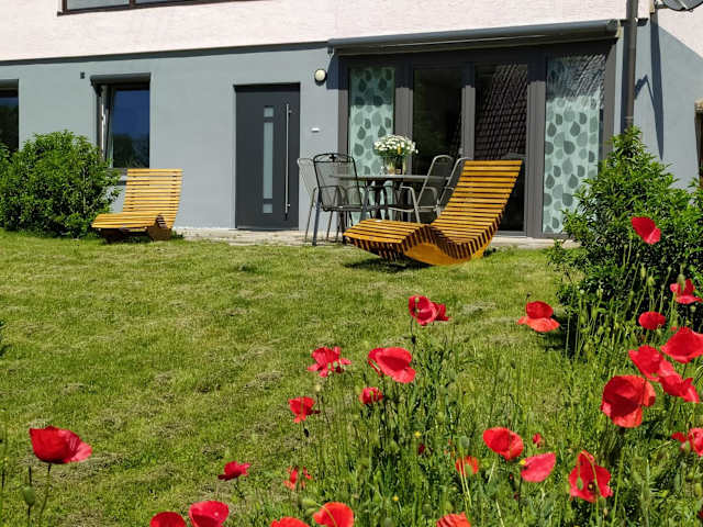 Die Ferienwohnung umfasst 2 Schlafzimmer, ein Wohnzimmer sowie eine gut ausgestattete Küche mit Kühlschrank und Geschirrspüler. Das Badezimmer verfügt über eine Dusche. Handtücher und Bettwäsche werden zur Verfügung gestellt. Von der Terrasse aus geniessen die Gäste einen Blick auf den Garten.