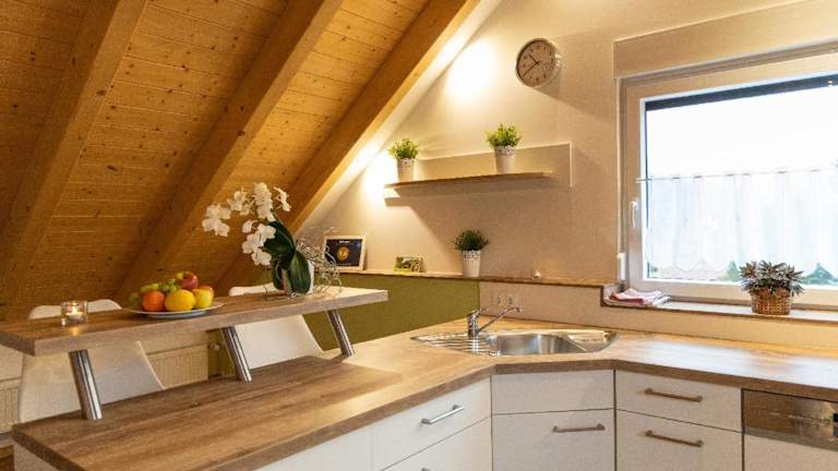 Die Ferienwohnung ist ausgestattet mit einem Schlafzimmer, einem Flachbild-TV, einem Essbereich und einer Küchenzeile mit Kühlschrank. Zudem stehen ein Wohnzimmer sowie Handtücher und Bettwäsche zur Verfügung.