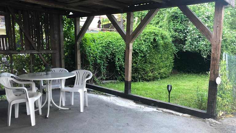 Die Ferienwohnung verfügt über ein Schlafzimmer, ein Wohnzimmer sowie einen Flachbild-TV. Die Ausstattung umfasst Gartenmöbel sowie Heizungs- und Desinfektionsmaßnahmen, um den Aufenthalt sicher zu gestalten. Ein Babybett kann auf Anfrage bereitgestellt werden.