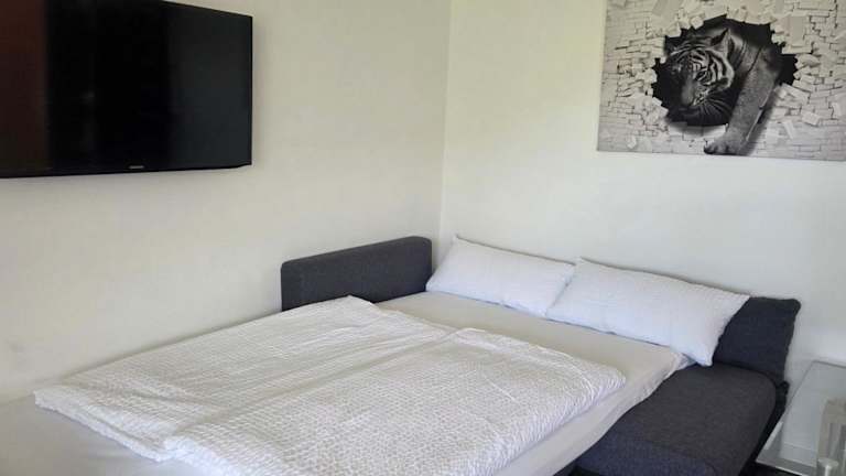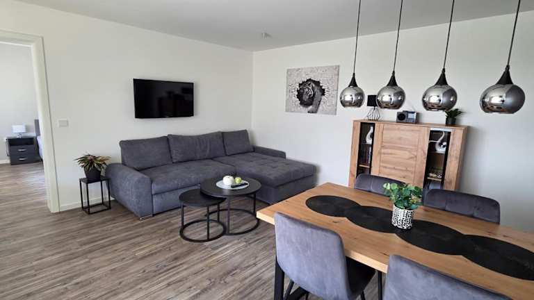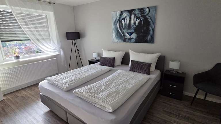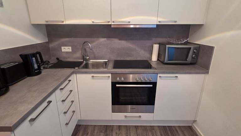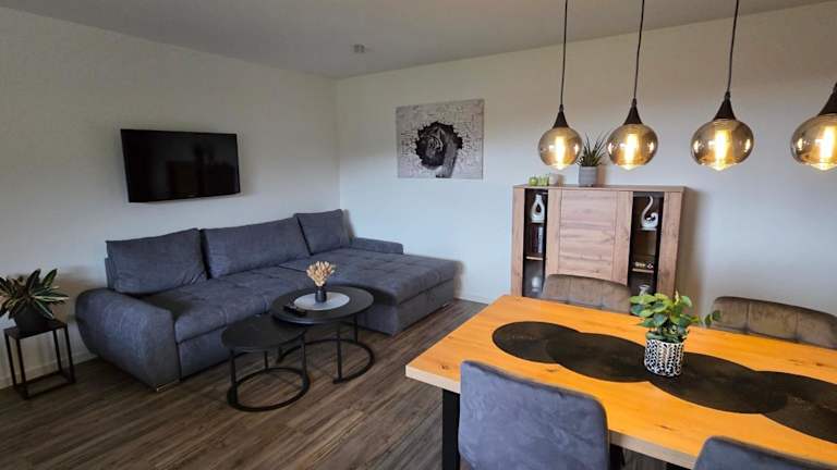 Die Ferienwohnung umfasst ein Schlafzimmer, ein Wohnzimmer, einen Flachbild-TV, eine gut ausgestattete Küche mit Kühlschrank und Geschirrspüler sowie ein Badezimmer mit Dusche. Handtücher und Bettwäsche werden bereitgestellt.