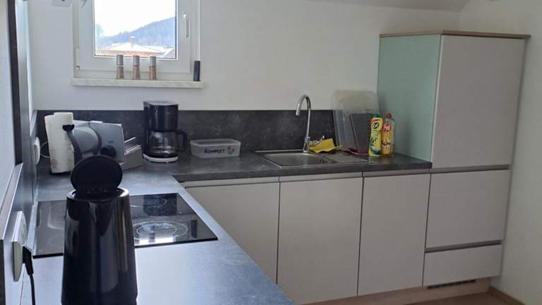 Die Ferienwohnung umfasst ein Schlafzimmer und ein Badezimmer. Sie ist ausgestattet mit Bettwäsche, Handtüchern, einem Flachbild-TV mit Satellitenkanälen sowie einem Essbereich. Die voll ausgestattete Küche ermöglicht eine bequeme Selbstverpflegung. Der Balkon bietet einen herrlichen Blick auf die Berge.