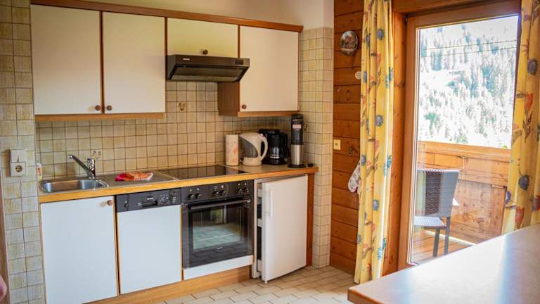 Die Ferienwohnung verfügt über 3 Schlafzimmer und 2 Badezimmer. Zur Ausstattung gehören Bettwäsche, Handtücher, ein Flachbild-TV mit Satellitenkanälen, ein Essbereich, eine voll ausgestattete Küche und eine Terrasse mit Blick auf die Berge.