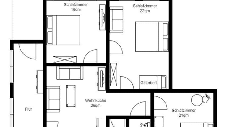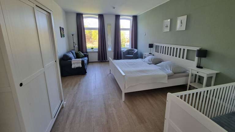 Die Ferienwohnung bietet 3 Schlafzimmer, einen TV und ein Badezimmer mit einer Dusche. Handtücher und Bettwäsche werden bereitgestellt. Die Küchenzeile ist mit einem Kühlschrank und einem Geschirrspüler ausgestattet.