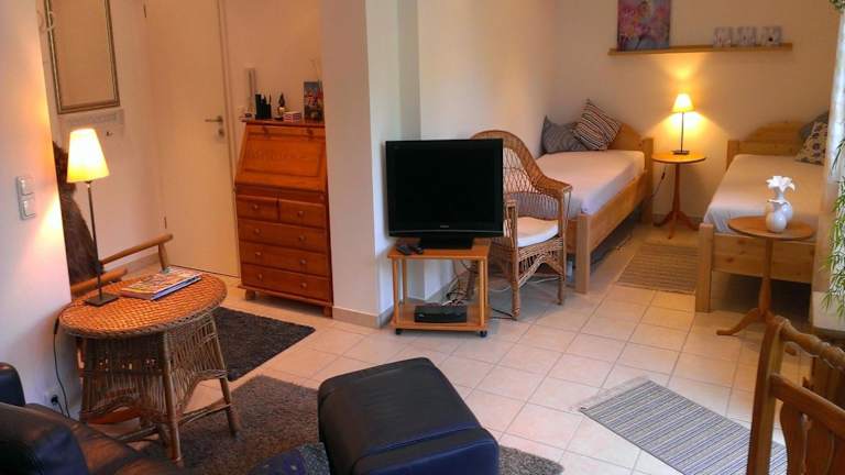 Die Ferienwohnung hat 1 Schlafzimmer und ist mit einem Flachbild-TV sowie einer gut ausgestatteten Küchenzeile mit Kühlschrank und Ofen ausgestattet. Des Weiteren verfügt sie über 1 Badezimmer mit Badewanne. Handtücher und Bettwäsche werden zur Verfügung gestellt.