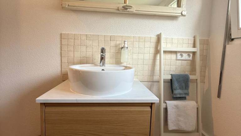 Die Ferienwohnung verfügt über ein Wohnzimmer mit Sitz- und Essbereich sowie eine voll ausgestattete Küche, die mit einem Kühlschrank, einem Geschirrspüler und einem Ofen ausgestattet ist. Es sind zwei Schlafzimmer vorhanden, sowie ein Badezimmer mit Bidet und Dusche. Bettwäsche und Handtücher werden bereitgestellt. Zur weiteren Ausstattung gehören ein Blu-ray-Player und WLAN.