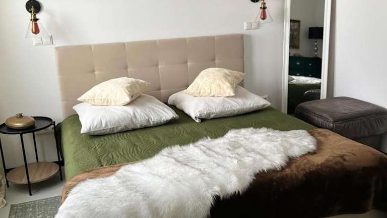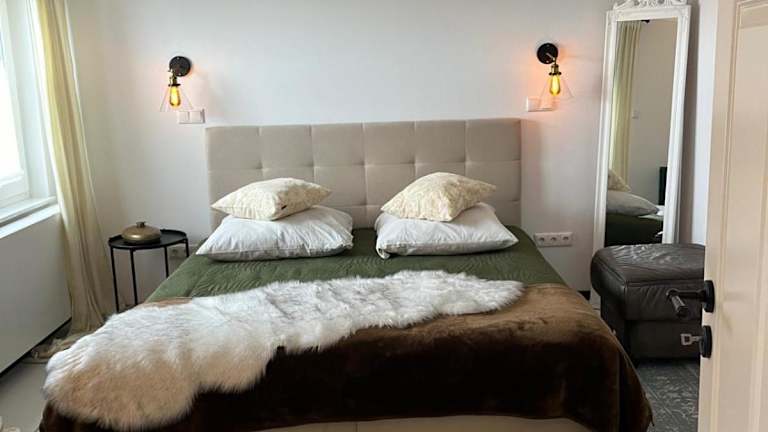 Die Ferienwohnung ist ausgestattet mit einem Schlafzimmer, einer Küche mit Kühlschrank und Geschirrspüler, einem Sitzbereich, einem TV und einem Bad mit Dusche. Ein Balkon mit Gartenmöbeln lädt zum Entspannen ein. Handtücher und Bettwäsche können gegen Aufpreis bereitgestellt werden.