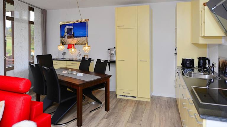 Die Ferienwohnung verfügt über ein Schlafzimmer, ein Wohnzimmer, eine gut ausgestattete Küche und ein Badezimmer mit Dusche und Badewanne. Zur Ausstattung gehören ein Sat-TV mit Flachbildschirm sowie kostenfreie Handtücher und Bettwäsche.