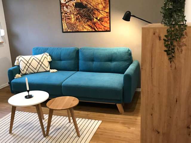 Die Ferienwohnung besteht aus 1 Schlafzimmer, einem Wohnzimmer und einer voll ausgestatteten Küche mit Kühlschrank und Kaffeemaschine. Ein Badezimmer mit Dusche und kostenlosen Pflegeprodukten ist ebenfalls vorhanden. Handtücher und Bettwäsche werden bereitgestellt.