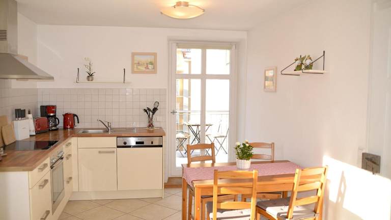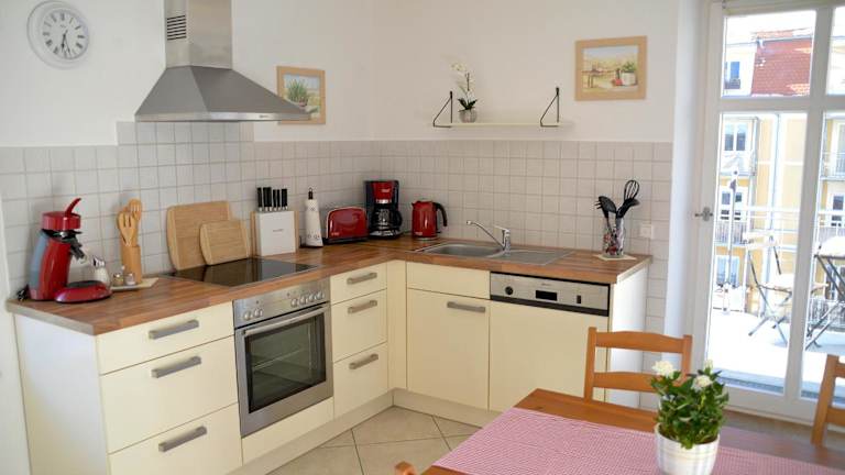 Die Ferienwohnung bietet ein Schlafzimmer, ein Wohnzimmer mit einem Flachbild-TV und eine gut ausgestattete Küche, die mit einem Kühlschrank und einem Geschirrspüler ausgestattet ist. Zudem gibt es ein Badezimmer mit einer Badewanne. Handtücher und Bettwäsche werden zur Verfügung gestellt.