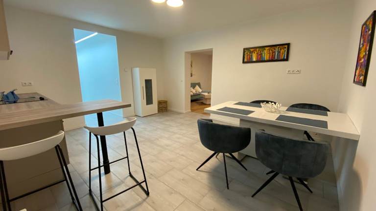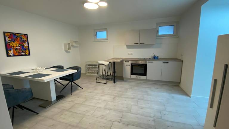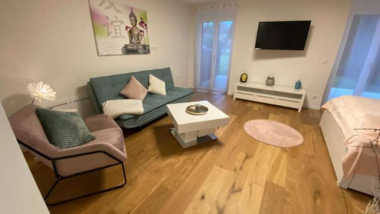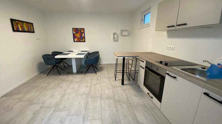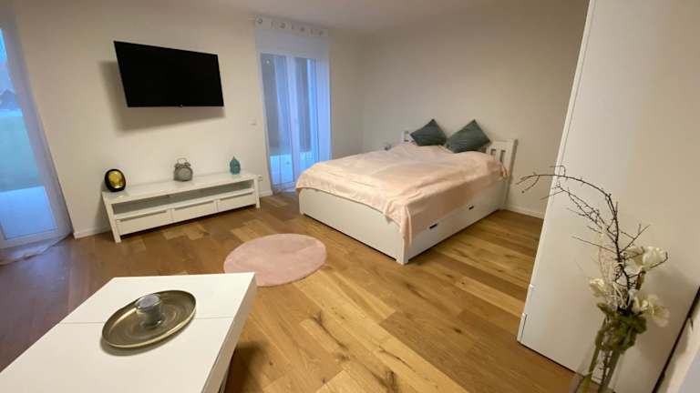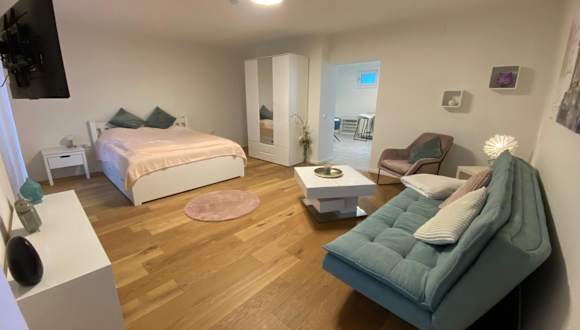 Die Ferienwohnung verfügt über ein Schlafzimmer, ein Wohnzimmer mit Flachbild-TV, eine gut ausgestattete Küche mit Kühlschrank und Ofen sowie ein Badezimmer mit Dusche. Handtücher und Bettwäsche werden bereitgestellt.