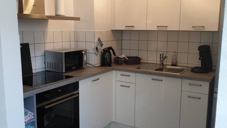 In der voll ausgestatteten Küche haben Gäste die Möglichkeit, sich selbst zu verpflegen. Essenslieferungen in die Unterkunft sind ebenfalls möglich. Neben dem Kühlschrank verfügt die Küche auch über eine Kaffeemaschine. Snacks sind in einem Minimarkt vor Ort erhältlich.