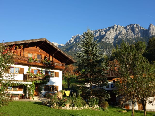 Wo man die Stille hören kann da begrüßen sich Rehe morgens. So auch rund um das abseits gelegene Ferienhaus, trotzdem ist man in fünf Minuten im Ortskern und in wenigen Stunden auf den herrlichen Gipfeln des Kaisergebirges. Die Ferienwohnung befindet sich in einzigartiger Lage direkt am Zahmen Kaiser auf 600 m Seehöhe. Die Wanderwege ins Kaisergebirge, Vorderkaiserfelden, Cafe Zacherl, Ritzau-Alm, Aschingeralm, St. Nikolauskirche, Raritätenzoo usw. beginnen direkt hinterm Haus. Die Maximalbelegung ist 2 Erwachsene und 2 Kinder. Da fast täglich Rehe um das Haus ziehen sind Hunde nicht erlaubt. Der Walchsee und das Skigebiet Zahmer Kaiser Durchholzen ist in 10, der Chiemsee und die Skiwelt Söll - Scheffau in 30 Minuten erreichbar.