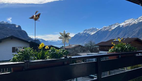 Die Ferienwohnung Sonnenseite Brienz liegt in der Nähe des Giessbachfälle, etwa 4,8 km entfernt. Zudem befindet sich die Unterkunft in einer landschaftlich reizvollen Gegend mit zahlreichen Wander- und Freizeitmöglichkeiten. Grindelwald Terminal ist 38 km entfernt, während das Freilichtmuseum Ballenberg nur 3,3 km von der Unterkunft entfernt ist. Der nächstgelegene Flughafen ist der Flughafen Bern, welcher sich 69 km entfernt befindet.