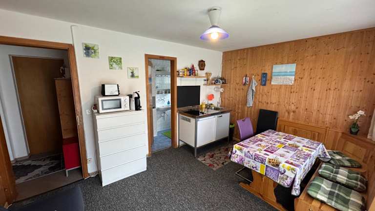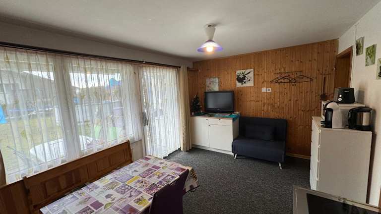 Die Ferienwohnung ist mit einem Schlafzimmer und einem Badezimmer ausgestattet. Zu den Annehmlichkeiten gehören eine voll ausgestattete Küchenzeile, ein Essbereich sowie ein Flachbild-TV mit Kabelkanälen. Bettwäsche, Handtücher und optional gegen Aufpreis verfügbare zusätzliche Handtücher und Bettwäsche sind ebenfalls vorhanden. Die Terrasse und die Veranda bieten eine einladende Möglichkeit, die Umgebung zu geniessen.