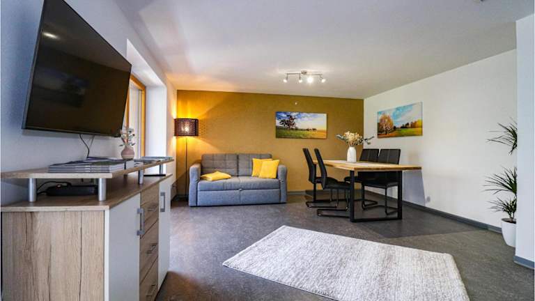 Die Ferienwohnung umfasst zwei Schlafzimmer, ein Wohnzimmer und eine gut ausgestattete Küche. Diese beinhaltet einen Kühlschrank sowie einen Geschirrspüler. Zudem steht Gästen kostenloser Privatparkplatz zur Verfügung.