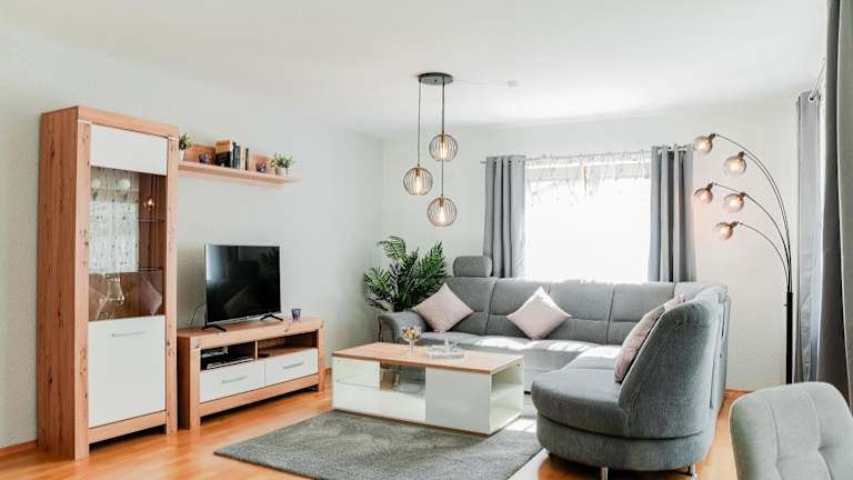 Die Ferienwohnung besteht aus 2 Schlafzimmern, einem Wohnzimmer mit einem Sitzbereich und einem Essbereich sowie einer voll ausgestatteten Küche mit Kühlschrank, Geschirrspüler und Ofen. Ein Badezimmer mit Dusche und Badewanne ist ebenfalls vorhanden. Zur Ausstattung zählen zudem ein DVD-Player, Handtücher und Bettwäsche.