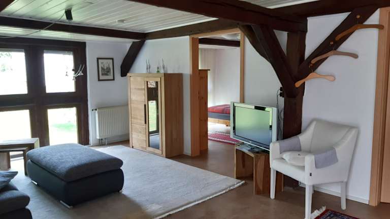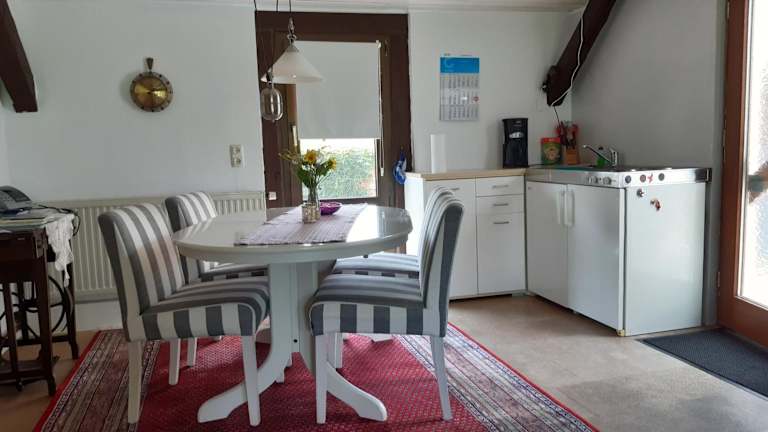 Die Ferienwohnung besteht aus einem Schlafzimmer, einem Wohnzimmer, einer voll ausgestatteten Küchenzeile mit Kühlschrank sowie einem Badezimmer mit Dusche und Haartrockner. Handtücher und Bettwäsche werden zur Verfügung gestellt.