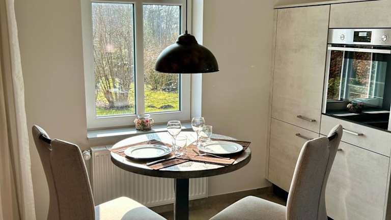 Die Ferienwohnung verfügt über 1 Schlafzimmer, eine Küche mit einem Kühlschrank und einem Ofen, einen Flachbild-TV und einen Sitzbereich. Das Badezimmer ist mit einer Dusche ausgestattet. Handtücher und Bettwäsche werden bereitgestellt.