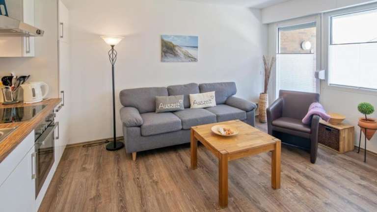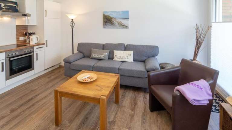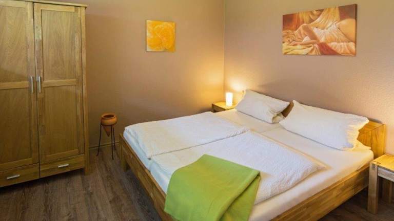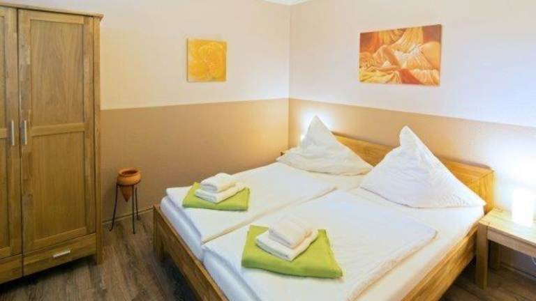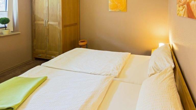 Die Ferienwohnung verfügt über 1 Schlafzimmer, einen TV sowie eine Küchenzeile, die mit einem Kühlschrank und einem Geschirrspüler ausgestattet ist.