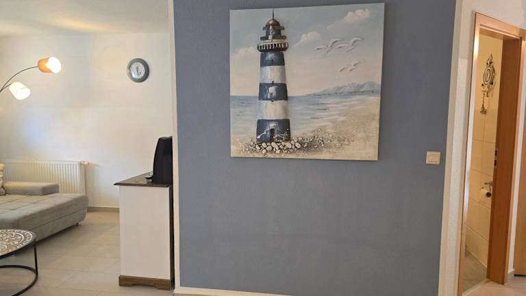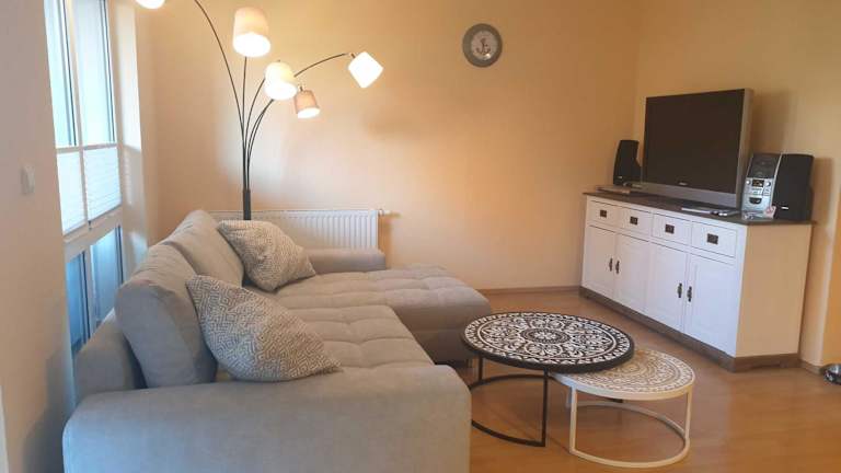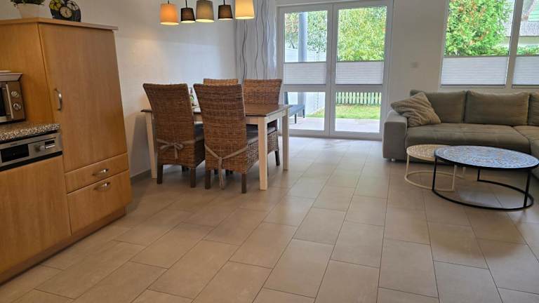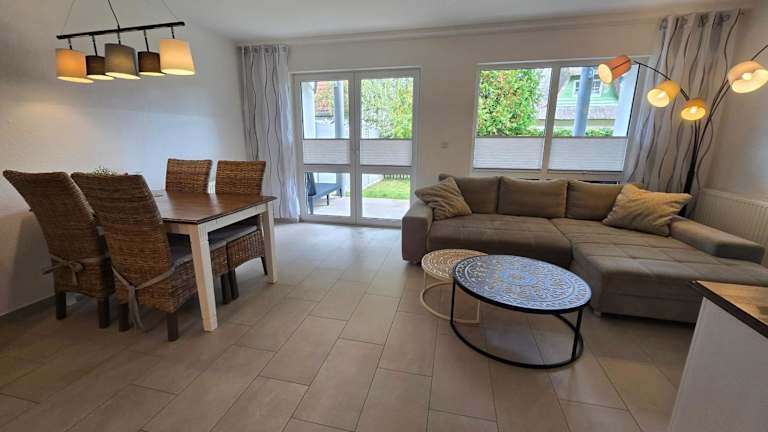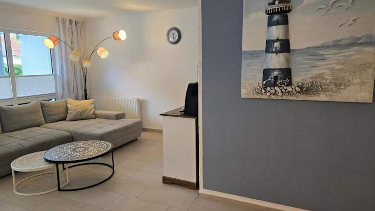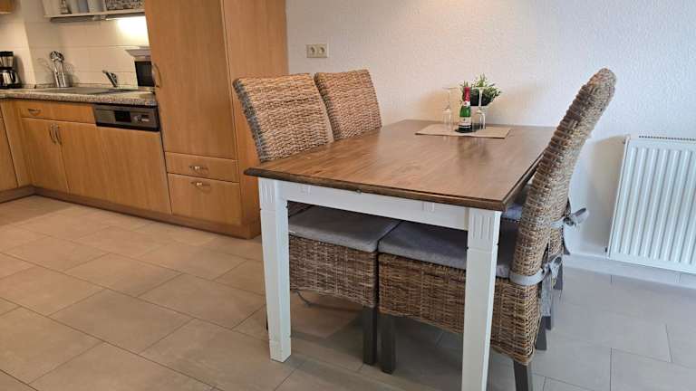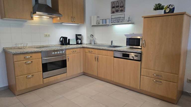 Die Ferienwohnung umfasst ein Schlafzimmer, ein Wohnzimmer, eine gut ausgestattet Küchenzeile mit Kühlschrank und Geschirrspüler sowie ein Badezimmer mit Dusche. Die Unterkunft hat keinen direkten Zugang zu Handtüchern und Bettwäsche, welche jedoch ausgeliehen oder selbst mitgebracht werden können. Zusätzlich sind keine Haushaltsartikel wie Geschirrspüler-Tabs oder Reinigungsmittel vorhanden.