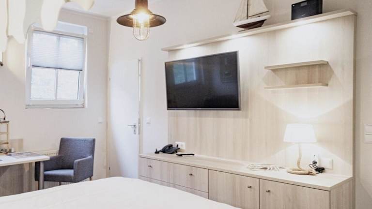 Die Unterkunft Ferienwohnung Strandkorb bietet ein einladendes Wohnzimmer mit Flachbild-TV. Gästen steht kostenloses Wifi zur Verfügung, und eine Privatparkiermöglichkeit ist ebenfalls vorhanden.