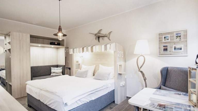 Die Ferienwohnung Strandkorb befindet sich in Dierhagen, nur 800 m vom Strand Dierhagen entfernt. In der näheren Umgebung sind verschiedene Freizeitaktivitäten möglich, und Sehenswürdigkeiten wie der Yachthafen Warnemünde und das Rathaus Rostock sind ebenfalls in der Nähe.