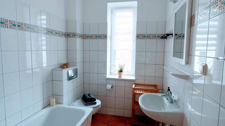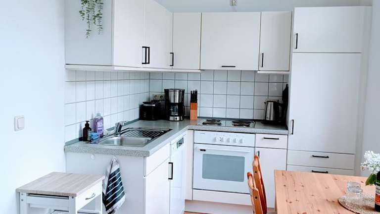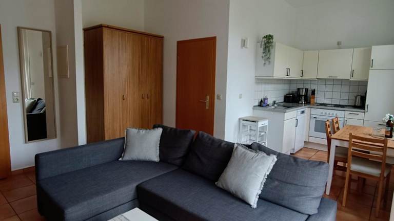 Die Ferienwohnung verfügt über 1 Schlafzimmer, ein Wohnzimmer und eine voll ausgestattete Küche mit Kühlschrank und Kaffeemaschine. Das Badezimmer ist mit einer Badewanne und einem Haartrockner ausgestattet. Für zusätzliche Bequemlichkeit können Handtücher und Bettwäsche gegen Aufpreis bereitgestellt werden.