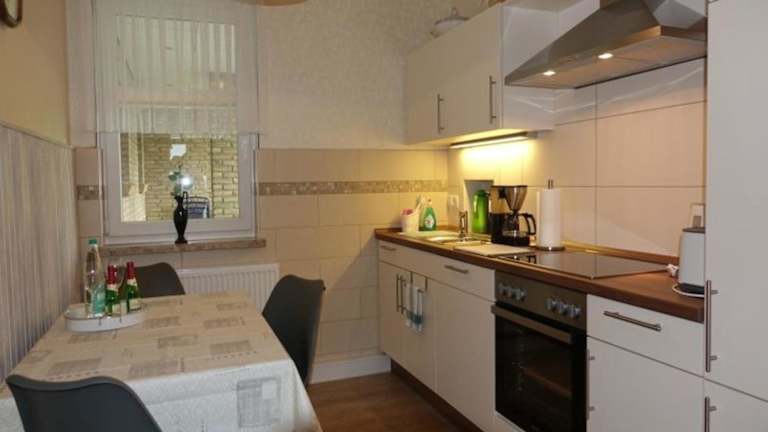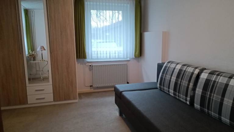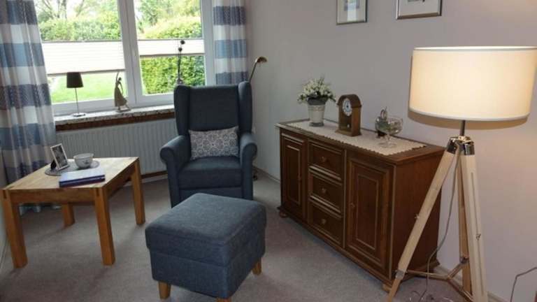Die Ferienwohnung besteht aus 1 Schlafzimmer und einem Wohnbereich. Die voll ausgestattete Küche beinhaltet einen Kühlschrank und eine Kaffeemaschine. Ein Badezimmer mit Dusche und Haartrockner sowie die Bereitstellung von Handtüchern und Bettwäsche runden die Ausstattung ab.