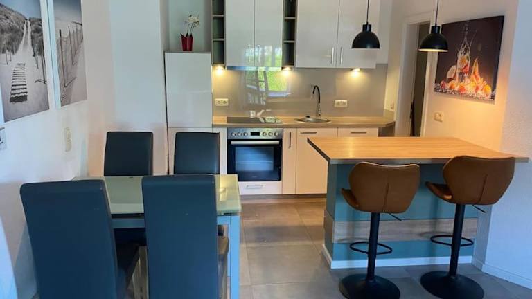 Die Ferienwohnung bietet eine voll ausgestattete Küche, in der Sie Ihre eigenen Mahlzeiten zubereiten können. In der Umgebung finden Sie auch verschiedene Restaurants und Cafés, in denen Sie lokale Spezialitäten genießen können.