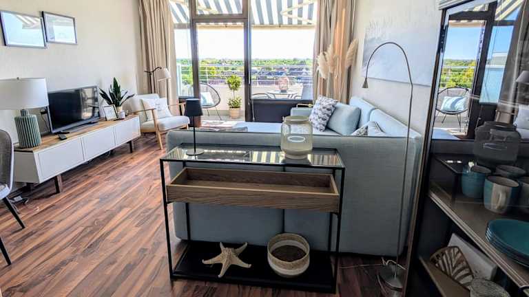Die Ferienwohnung Sun and Sea - Palstek befindet sich in Marina Wendtorf, nur etwa 300 m von der Strand Aussichtsterrasse entfernt. In der Nähe sind verschiedene Strände, darunter der Hundestrand in 1,2 km Entfernung und der Strand an den Steilklippen, der etwa 3 km entfernt liegt. Zu den Sehenswürdigkeiten zählen das Marine-Ehrenmal und das U-Boot-Museum, welches 5,7 km entfernt ist. Der Hauptbahnhof Kiel liegt 21 km von der Unterkunft entfernt, während der nächstgelegene Flughafen, der Flughafen Hamburg, sich 107 km entfernt befindet.