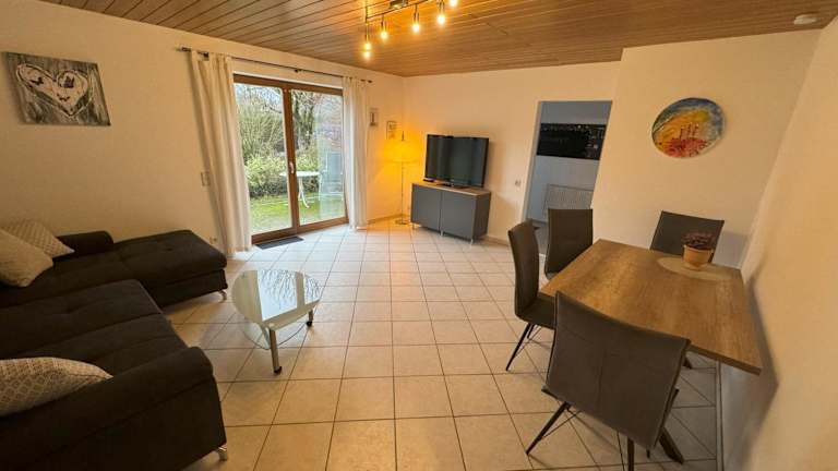 Die Ferienwohnung umfasst 1 Schlafzimmer, ein Wohnzimmer mit Flachbild-TV, eine gut ausgestattete Küche mit Kühlschrank und Geschirrspüler sowie ein Badezimmer mit Dusche. Handtücher und Bettwäsche werden bereitgestellt.